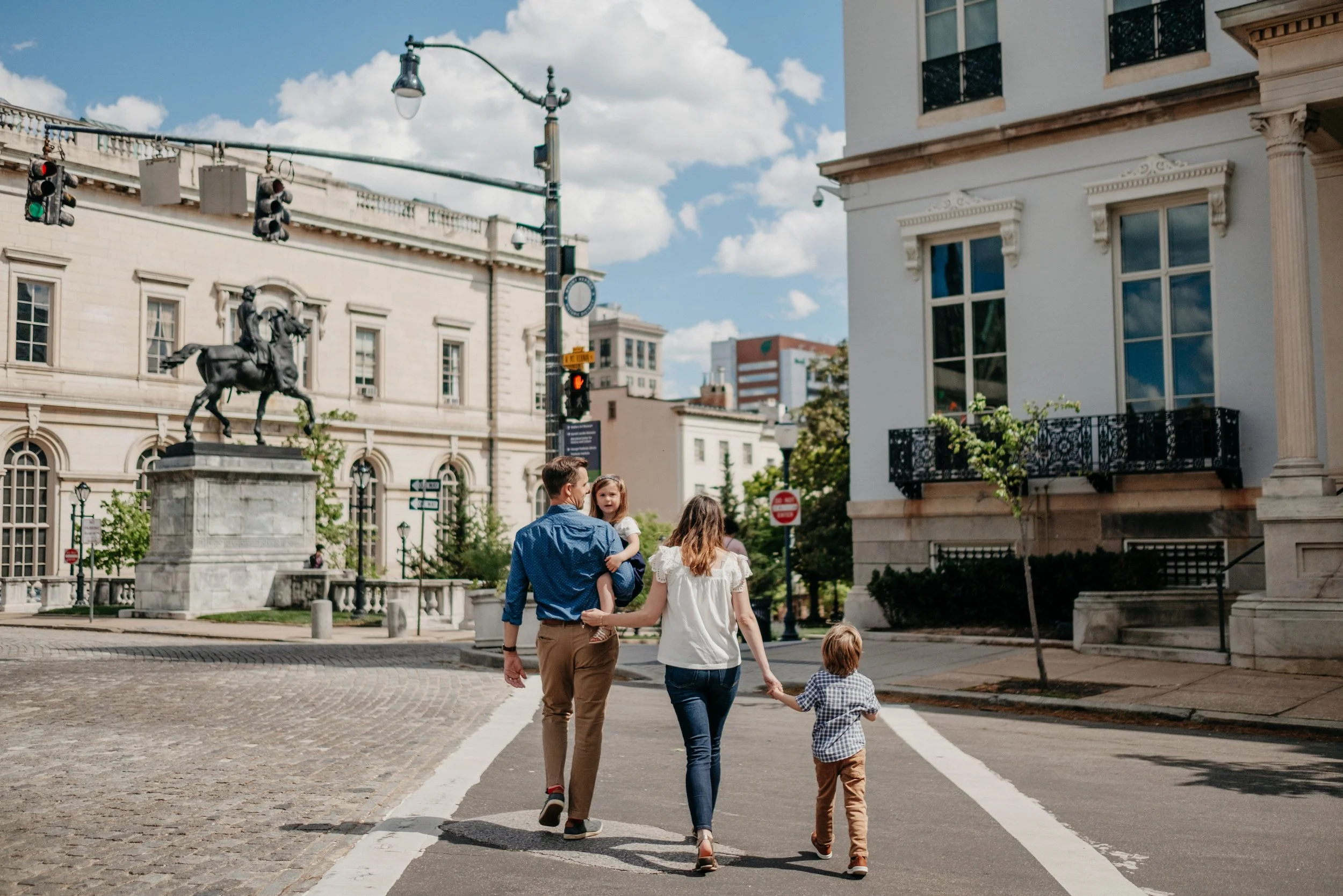 Mount Vernon boasts stunning 19th-century architecture, grand brownstones, and multiple beautifully maintained squares. This provides a timeless and elegant feel for family portraits! In the spring, the neighborhood comes alive with blooming trees, adding pops of color against the classic architecture. Later in the year, the mature trees surrounding the monument and lining the streets erupt in vibrant fall foliage, offering a warm and picturesque setting.
