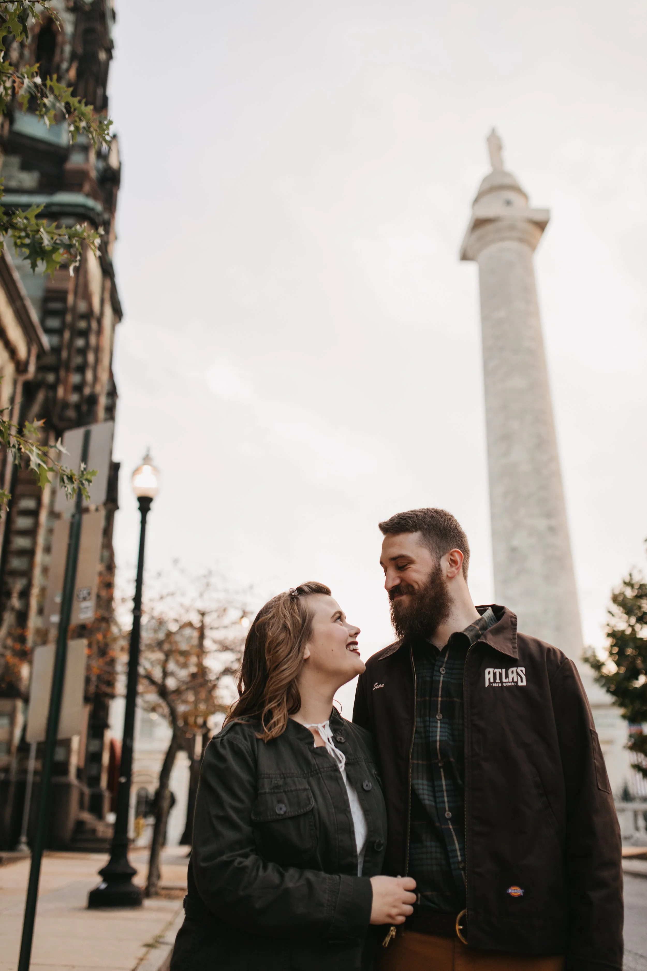 The historic Mount Vernon neighborhood, anchored by the iconic Baltimore Washington Monument, offers a sophisticated historic backdrop for family photos.