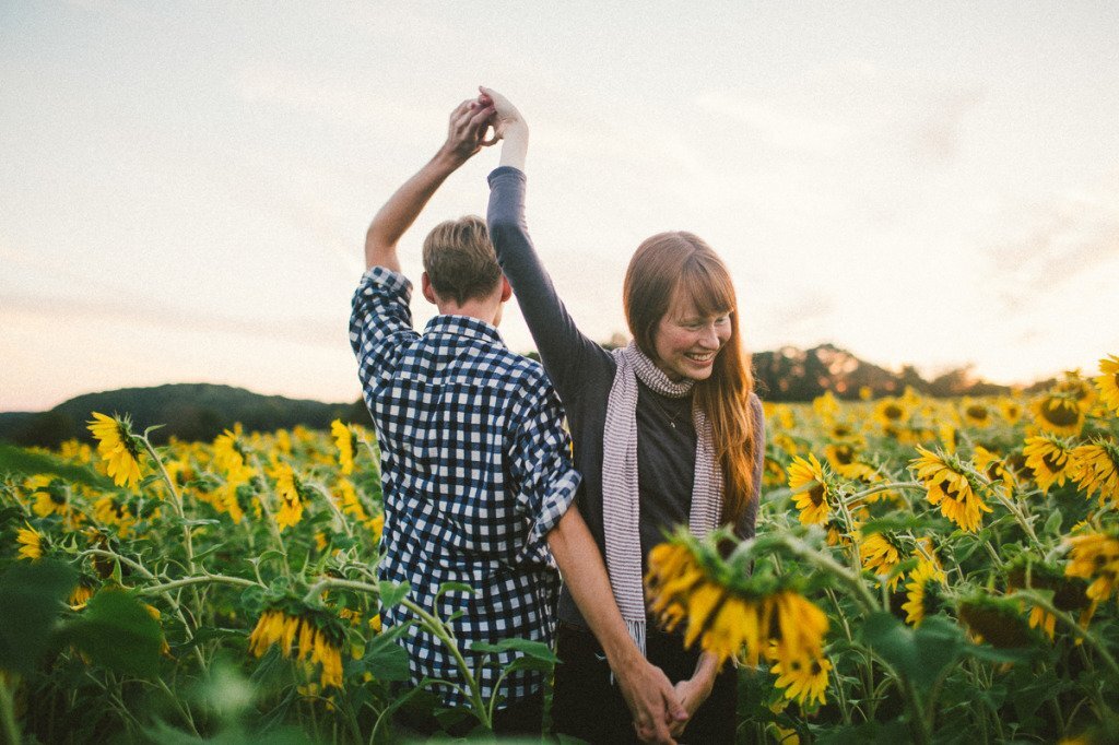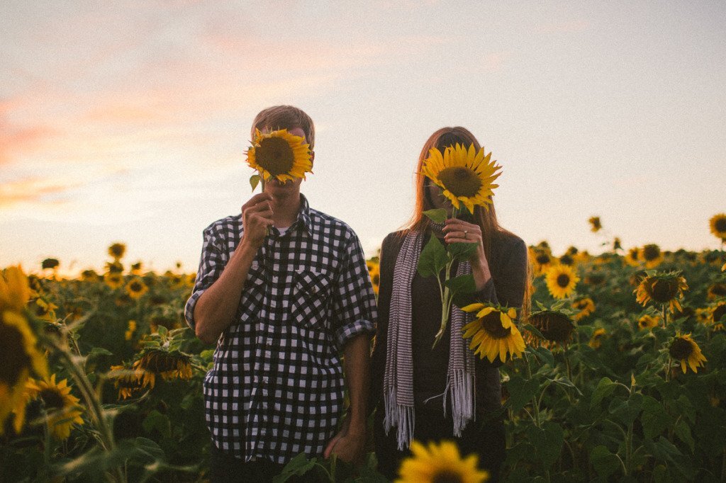 Lindsay Anne had just learned of a sunflower field in bloom northeast of Baltimore, so she suggested that as a location. Perfect! On Friday, the four of us headed up there in V-Dub: Heart of a Champion and in voluminous traffic which made me nervous about the setting sun. The sun doesn’t have to compete with traffic. Not like us. Fortunately we got there with 40 minutes of sunshine left and the flowers were just starting to get sleepy. We ventured into the field.